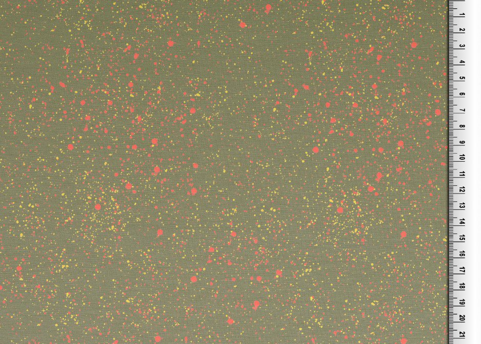 Jersey Baumwoll Sprengel Hellrot/ Gelb auf Khaki