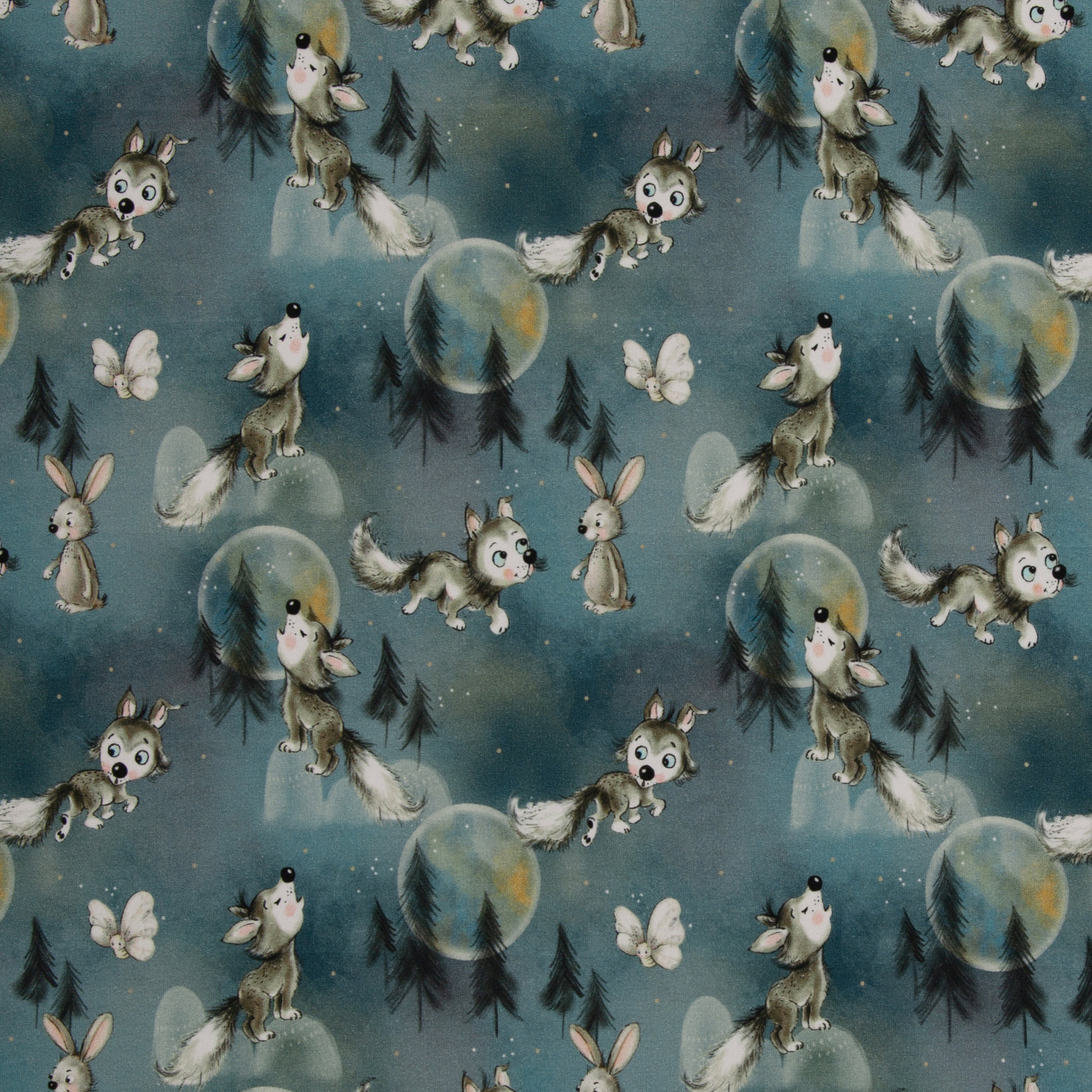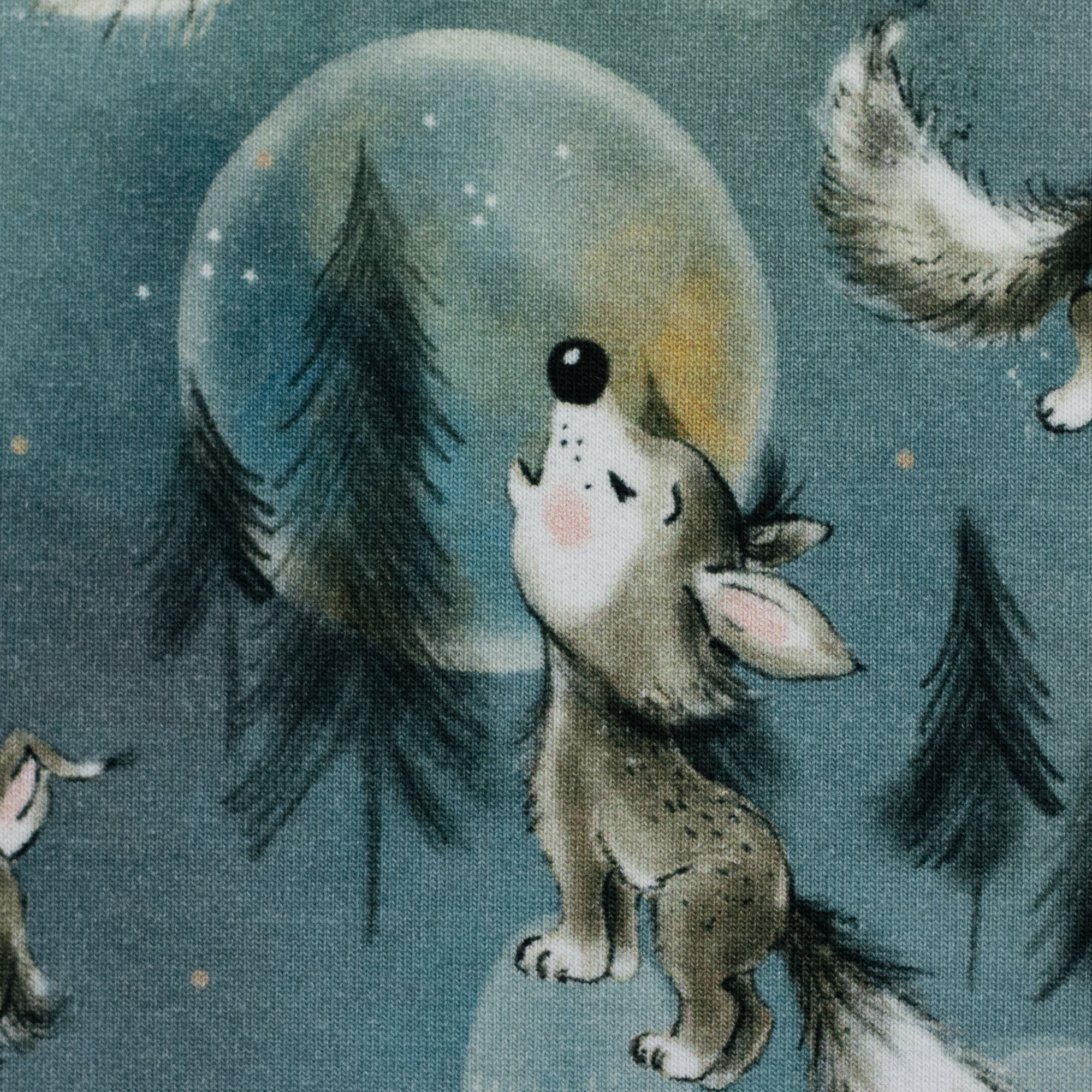 Baumwolljersey Jerry Kleine Wölfe auf Blau von Swafing