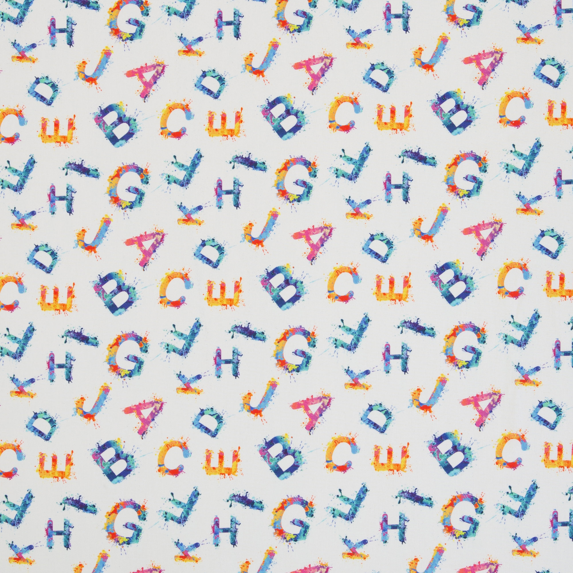 Baumwolldruck Bunte Buchstabe auf Weiß von Swafing